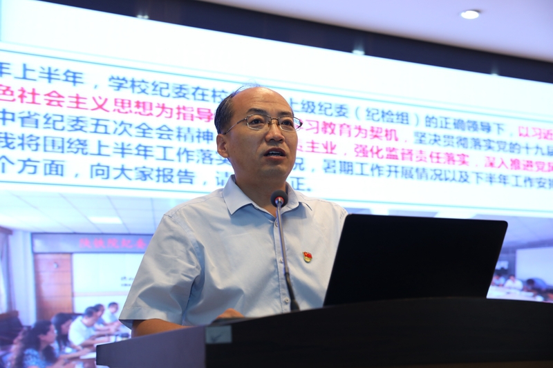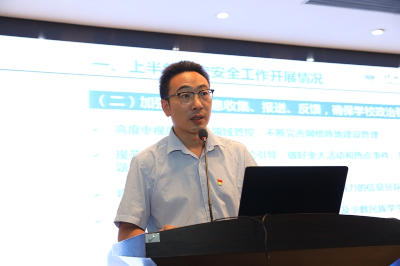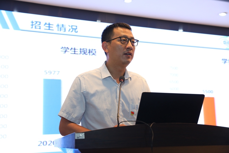 会议第一阶段为情况通报与工作部署。党委副书记李林军通报了上半年党史学习教育开展情况,并部署了下一阶段工作;党委副书记、纪委书记黎炜通报了纪检监察工作情况,并就党风廉政建设工作提出要求;副校长蒋平江通报了2021年招生情况、“双高”建设情况等;副校长张学钢通报了高新校区建设进展情况;副校长贺建锋通报了暑期及开学前,学校疫情防控工作开展情况;副校长祝和意通报了学校稳定安全工作开展情况,并部署了平安校园复评复审相关工作。