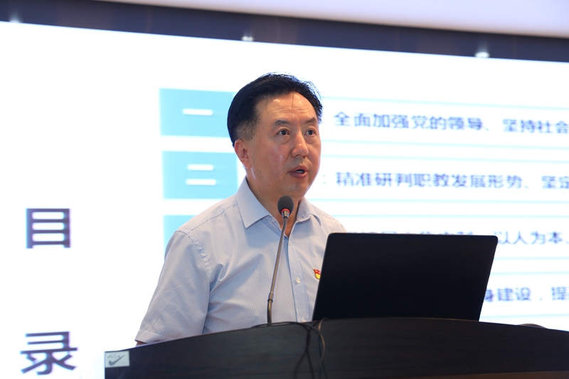 党委书记王津从把方向、管大局、做决策、抓班子、带队伍、保落实等六个方面作了重要讲话。王津强调,一要全面加强党的领导、坚持社会主义办学方向;二要精准研判职教发展形势、坚定走高质量发展之路;三要坚持民主集中制,以人为本、科学决策;四要加强领导班子自身建设,提高决策水平和执政能力;五要坚持人才强校战略,打造一支干净担当的队伍;六要聚焦聚神聚力,抓好重点工作任务落实。全体教职员工要继续发扬“吃苦奉献 拼搏争先”精神,勇于扛起使命担当,抢抓历史机遇,以迎难而上的姿态继续扎实推进各项工作,全力以赴打好“双高”建设攻坚战。