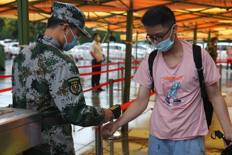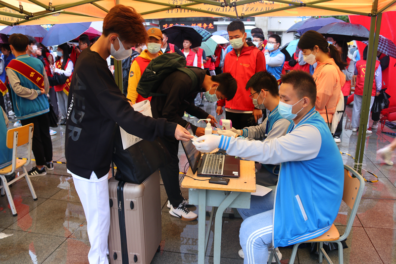 根据疫情防控相关要求,本次开学按照“错区域、错层次、错时、错峰”的原则组织新生报到,严格把好校门。新生返校前自查症状、自测体温、自备口罩、严格落实开学前至少14天居家观察和健康监测。报到当天,学校在校门入口返校处设置学生返校工作组、应急处理组,返校工作组现场进行身份核验、三码(行程码、健康码、疫苗接种码)查验、体温检测等,应急处理组现场复验体温异常学生,整个报到流程通畅快捷。