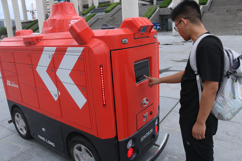 京东小红车(智能快递车)为新生进行智能派件服务