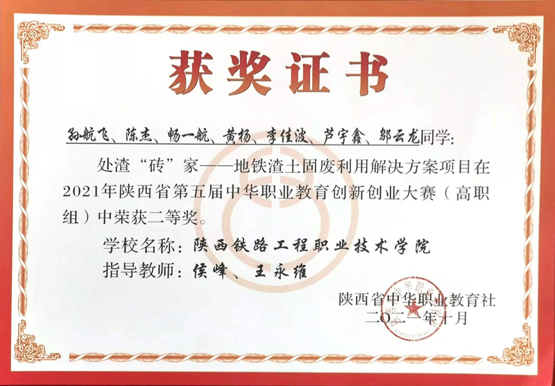 学校测绘学院报送的创新创业团队项目“处渣“砖”家——地铁渣土固废利用解决方案”获得大赛二等奖,并入围中华职教创业大赛国赛资格,学校在此次大赛中获优秀组织奖,这是在此创新创业竞赛中的又一突破。