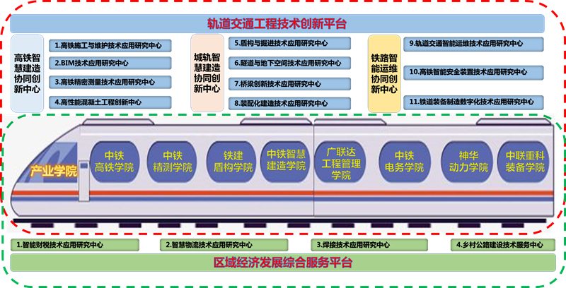 学校坚持依托铁路行业办学,突出铁路特色育人,服务国家“一带一路”和高铁“走出去”战略,对接铁路产业发展和技术升级,锚定高铁高端产业和城轨产业高端,以立德树人为根本,以专业群建设为核心,以师资队伍建设为关键,以技术创新为驱动,以产教融合为抓手,以体制机制改革为动力,紧紧围绕“一加强、四打造、五提升”的十项改革发展任务,按照“高起点设计、高标准建设、高质量发展”的建设思路,打造“12358”标杆院校和样板间,通过实施“建平台、树标杆、筑高峰”三步走战略,建成“引领改革、支撑发展、中国特色、世界水平”的“支撑高铁建设,铸就筑路先锋”高水平高职学校。