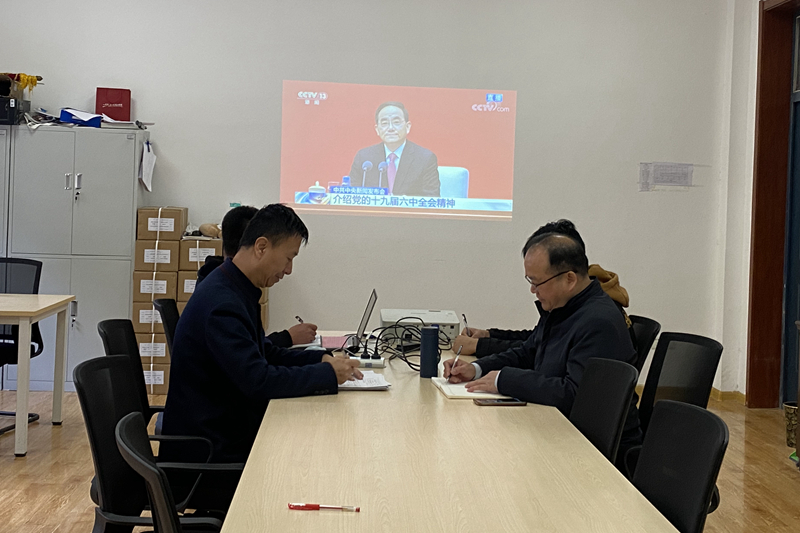 测绘与检测学院无课教师在GA-304教室集中观看了中国共产党第十九届中央委员会第六次全体会议新闻发布会直播,学习党的十九届六中全会精神。