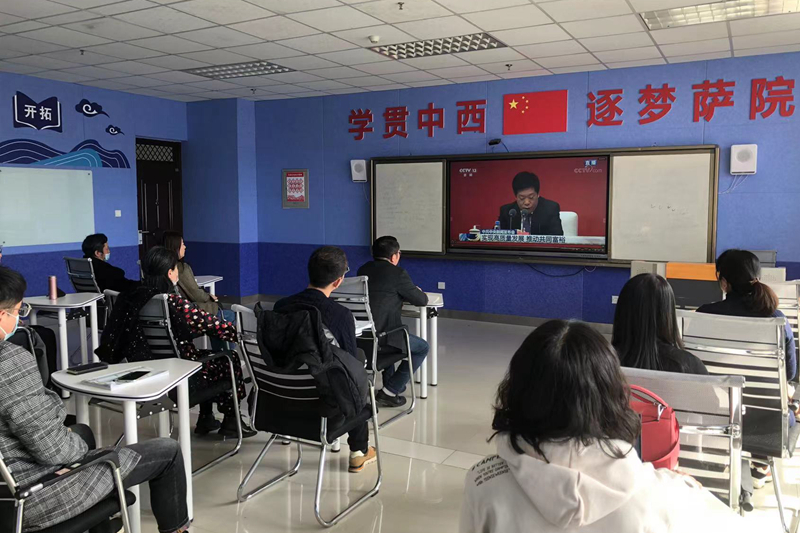 铁道装备制造学院无课教职工和学生分别组织收看直播