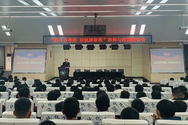 11月3日下午,校长焦胜军在高新校区诚信报告厅为高铁学院大一新生300多人作了题为“奋斗百年路 启航新征程”的形势与政策报告。