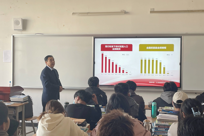 为深入贯彻习近平总书记在学校思想政治理论课教师座谈会上的讲话精神,落实中共中央办公厅、国务院办公厅《关于深化新时代学校思想政治理论课改革创新的若干意见》文件精神。11月11日下午,校党委副书记李林军在GB630教室为铁成桥建3211班学生讲授题为“奋斗百年路 启航新征程”的形势与政策课。