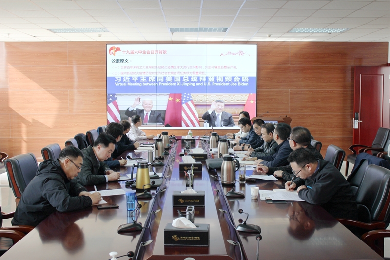 11月17日上午,学校党委中心组在高新校区南三楼会议室专题学习党的十九届六中全会精神。学校党委委员,党委宣传部、党委组织部、党政办等部门负责人参加了会议,会议由党委书记王津主持。