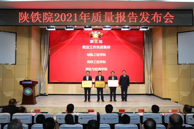 黎炜发布了《2021年就业质量报告》,他从2021届毕业生就业基本数据、就业质量及社会评价、就业主要工作举措、2022届就业形势研判及努力方向四个方面进行了汇报。截至目前,2021届毕业生初次毕业去向落实率96.23%,位居陕西高职高专院校前列,其中,80.63%的毕业生就业于中国中铁、中国铁建、国铁集团等国有企业。据麦可思应届毕业生培养质量评价报告(2020)显示,陕铁院毕业生在月收入、就业与专业相关度、就业稳定性等就业质量指标与全国“双高”校、全国高职院校平均水平比较具有明显优势;各项满意度评价和整体评价较高。聚焦职教发布的高职院校500强企业就业人数占比排行榜中,学校毕业生以78.80%的500强企业就业比重位列全国高职院校第二位,陕西省高职院校首位,毕业生就业质量稳居陕西省高职院校就业质量第一梯队,达到了就业单位、家长、学生三方满意的目的;同时发布的2021年全国高职高专院校满意度分地区排行榜中,学校以满意度总和12.4位居陕西省高职高专院校首位,满意度充分反映了毕业生、在校学生对自己母校办学条件和育人质量的真实感受。
