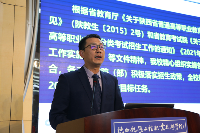 刘明学处长作期中教学诊改暨“双高”建设总结报告并宣贯《陕西铁路工程职业技术学院招生工作绩效考核管理办法》