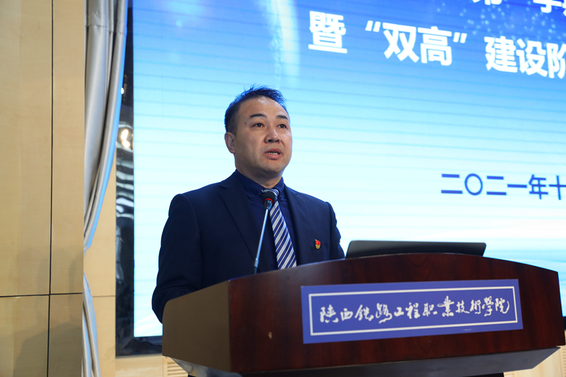 2021年,学校以“双高建设”为引领,聚焦质量提升,加强内涵建设,全面推进“三教”改革,深化产教融合、校企合作,各项工作呈现出良好发展态势,教学成果丰硕、招生数再创新高、就业质量良好,赢得了学生、家长和社会的满意。同时,为进一步分析总结本学期前一阶段的教学运行和本年度“双高”建设推进情况,查找工作中存在的问题和不足,不断改进提升工作质量,研判发展形势,促进学校发展,12月1日,学校在高新校区博爱厅举办2021年质量报告发布、期中教学诊改暨“双高”建设总结会议。学校党委书记王津,校长焦胜军,副校长张学钢、贺建锋出席会议,中国青年报、工人日报、陕西广播电视台、陕西工人报、《陕西现代职业教育研究》杂志社,渭南电视台等媒体应邀参会,全校处科级干部、全体专兼教师参加了会议,大会分三个阶段进行,党委副书记李林军主持第一个阶段,党委副书记、纪委书记黎炜主持第二个阶段,副校长蒋平江主持第三个阶段。