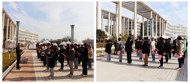 ——开展“宪法诵读和宪法宣誓”活动。12月3日,学校安保处老师组织学生在高新校区火车头广场集体诵读《宪法》第一条、第二条、第五条、第三十三条、第四十六条、第五十一条至第五十四条内容。诵读完毕后,在安保处老师的带领下,大家举起紧握的右拳进行了宪法宣誓:“忠于中华人民共和国宪法,学习宪法知识,维护宪法权威,热爱祖国、热爱人民、热爱中国共产党,努力学习、自信自强,为建设富强、民主、文明、和谐的社会主义国家努力奋斗。”宣誓,是一种承诺,更是一种警示,有助于学生从内心树立起忠于宪法和法律的理念,自觉接受宪法的教育和洗礼,长存对宪法的敬畏之心。
