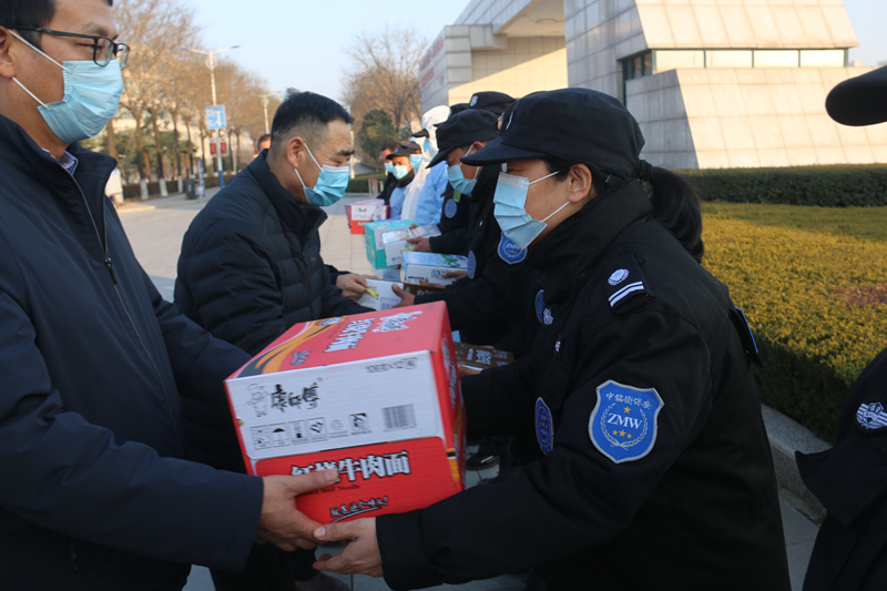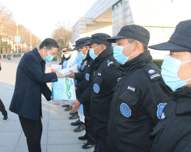 1月1日下午,焦胜军校长、李林军副书记、蒋平江副校长、贺建锋副校长和疫情防控领导小组成员分别在两校区慰问奋战在疫情防控一线的安保人员,为他们送去桶装方便面和牛奶等慰问品。