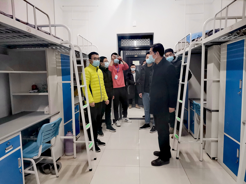 1月2日下午,校长焦胜军深入高铁工程学院学生公寓检查指导疫情防控工作,看望慰问坚守在疫情防控一线的党员先锋队及学生志愿者,就进一步做好疫情防控,对封控期间学生的生活、学习、考试等方面具体工作进行指导。