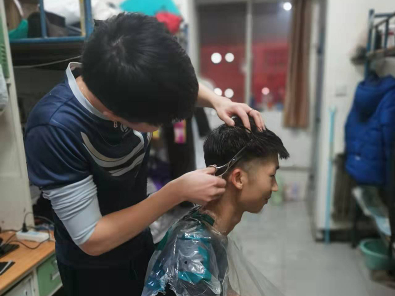 赵家乐同学的理发才艺,得益于平时注重自己的形象,他高兴地说:“学习理发一开始只是为了能自己给自己剪头发,设计发型,没想到在疫情期间却解决了同学们的困难。”