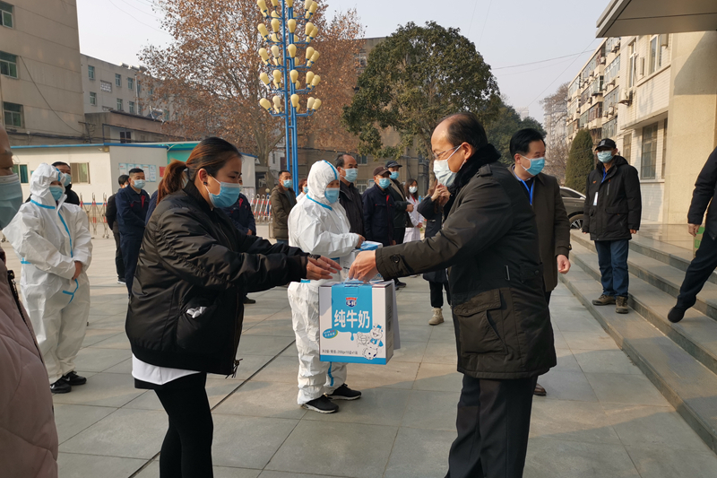 1月3日上午,学校党委书记王津,党委副书记、纪委书记黎炜,副校长贺建锋和疫情防控领导小组成员在临渭校区慰问奋战在疫情防控一线的后勤服务保障人员,为他们送去牛奶、饼干等慰问品。