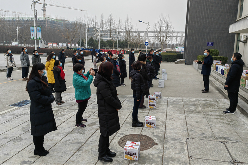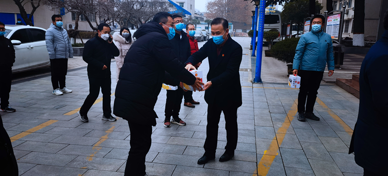 1月6日上午,校长焦胜军来到带高新校区,看望慰问了在学生公寓值班的辅导员和宿舍管理员,向他们赠送了慰问品,对他们坚守抗疫一线、保护学生平安所付出的辛勤劳动和无私奉献表示感谢,叮嘱大家要科学认识当前疫情防控形势,树立长期作战意识。同时也要做好自我防护,坚守岗位,勇挑重担,全力以赴构筑疫情防控的坚固防线,坚决打赢这场疫情防控歼灭战。
