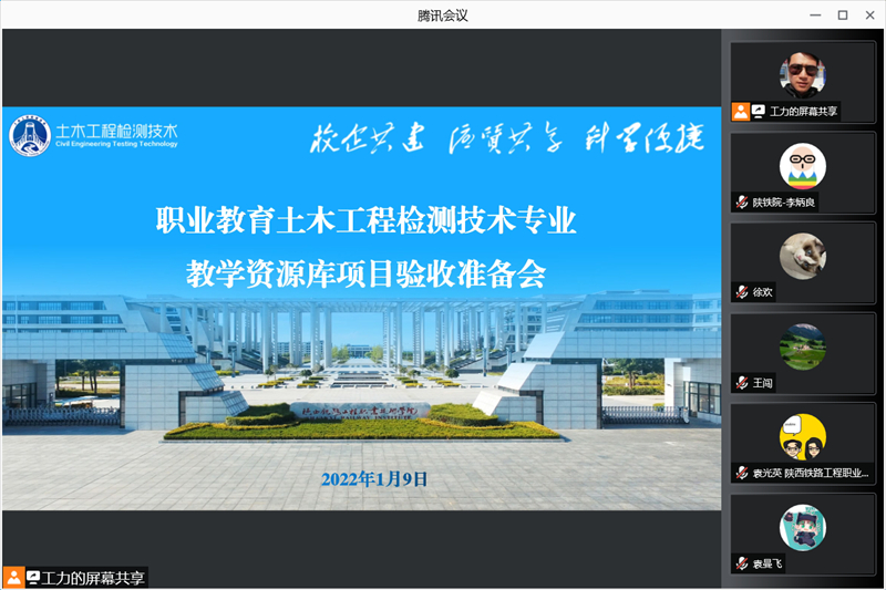 为了全力推进土木工程检测技术专业教学资源库的建设,确保2022年资源库验收顺利通过。1月9日,学校线上召开职业教育土木工程检测技术专业教学资源库项目验收准备会。中国建材行业职业教育教学委员会委员、中国建材检验认证集团股份有限公司董事陈璐,贵州交通职业技术学院副书记刘正发,学校党委书记王津、校长焦胜军、副校长蒋平江等领导出席了会议。中国建材行业职业教育教学委员会和全国8个省的职业院校等资源库建设单位的领导和课程负责人,以及关心检测资源库建设的其他院校的领导、老师共计70多人参加了会议。会议共分专家报告会、资源库建设与资金使用情况通报、资源库验收工作汇报3个阶段。