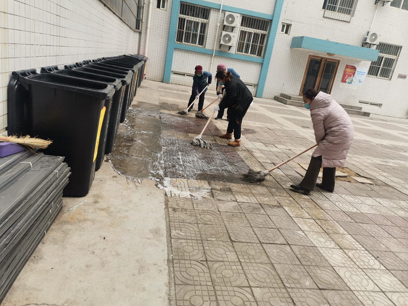 王妙娟(右一)在对垃圾区域进行清洁