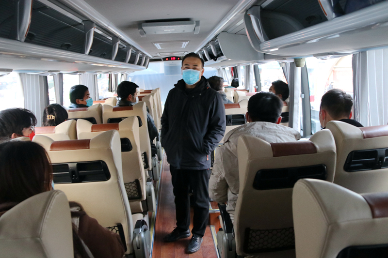 乘车当天,校领导分别来到两校区现场检查指导学生返乡工作,关心询问了学生的归属地、家乡疫情防控政策,是否存在回家困难等问题。看到学生们高高兴兴的坐上暖心专车,校领导来到车上,叮嘱大家,务必戴好口罩,做好个人防护,过一个平安、开心的寒假。