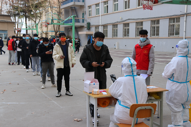 放假前一天,学校在高新、临渭两校区分批次、分地点对全校学生进行了核酸检测。为组织好本次核酸检测,各二级学院提前收集了学生信息,设置采样点,安排专门老师带队,对整个采样流程进行了科学设置,保障了核酸检测顺利、高效进行。整个核酸采集现场秩序井然,同学们在教师和志愿者的统一引导下,规范佩戴口罩,保持一米以上间距排队等候,完成核酸采样后,有序、快速离场。
