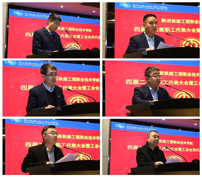 1月15日,陕铁院在临渭校区学术报告厅召开四届二次教职工代表大会暨工会会员代表大会,党委书记王津,校长焦胜军,党委副书记李林军,党委副书记、纪委书记黎炜,副校长蒋平江、张学钢、贺建锋出席会议,正式代表、列席代表和特邀代表参加了会议。