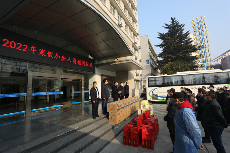 1月18日下午,焦胜军校长、蒋平江副校长、贺建锋副校长看望慰问寒假加班的教职员工及留校学生,并给大家送上了慰问品。焦胜军表示,现在学校处于常态化疫情防控期,后勤餐饮及安保人员坚守岗位,守护校园安全。学工系统教职员工依然坚守一线,保障留校学生们的学习生活。“双高”各工作组、各专业群加班加点梳理各项任务,撰写自评报告。大家用实际行动践行着学校“吃苦奉献 拼搏争先”的精神,在各自岗位上默默付出,在建设中国铁路工程特色高水平高职学校的征程中,贡献自己的力量。为大家点赞,铁院人都是好样的!