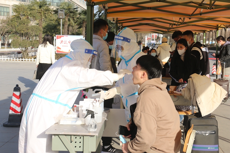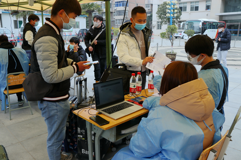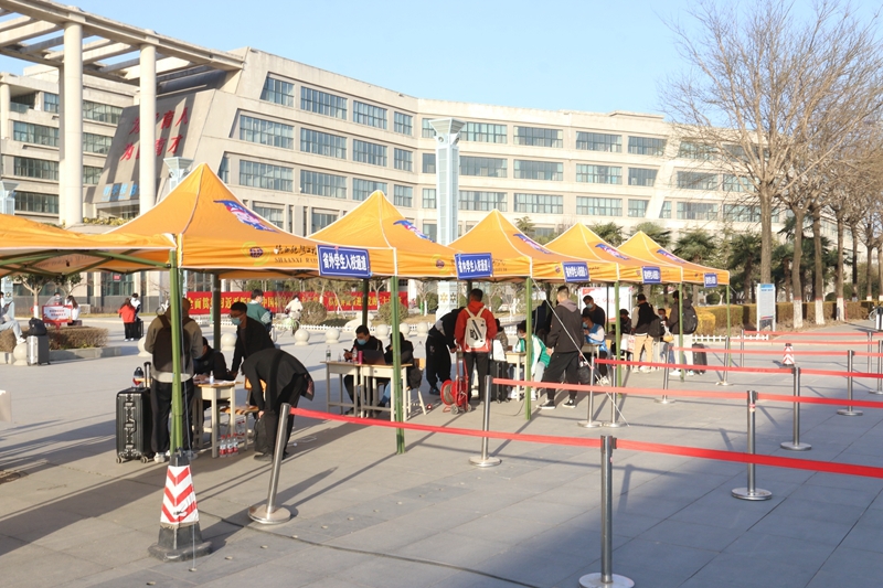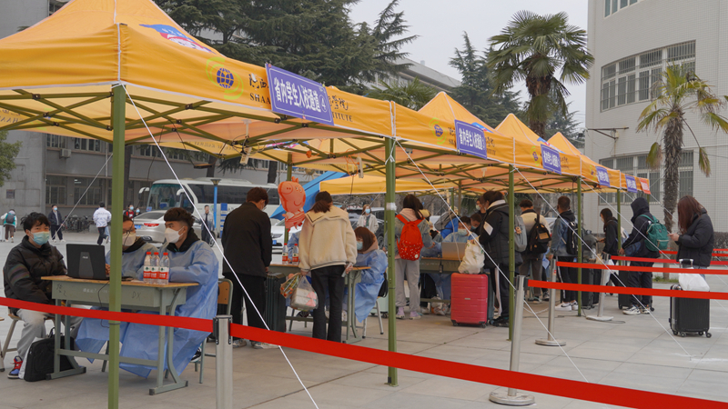 学校在两校区校门口设置了学生返校专用通道,符合返校条件学生需持48小时内核酸检测阴性证明、新冠疫苗加强针接种证明(符合接种要求的尽量完成第三针接种),接受健康码和通信大数据行程卡核查,体温检测后有序地通过学生专用通道进入学校。同时还设立核酸检测点,为返校的省外学生做核酸检测。细致周到的服务让学生倍感暖心。