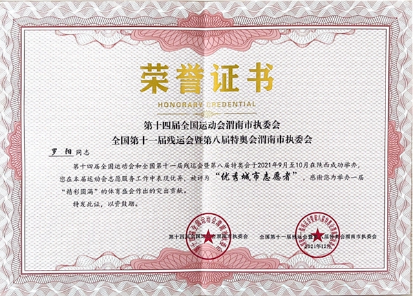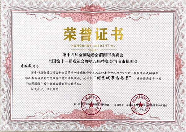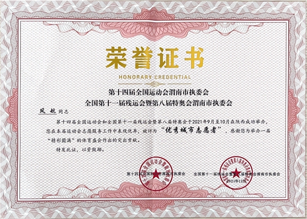 近日,全国十四运会和残特奥会组委会对十四运会和残特奥会志愿服务工作先进单位和个人进行了通报表扬。我校学子唐义成、罗阳、凤航获十四运会和残特奥会“优秀城市志愿者”荣誉称号。学校青年志愿者协会获评十四运会和残特奥会渭南赛区“优秀组织”,校团委干事王震获评“先进工作者”。