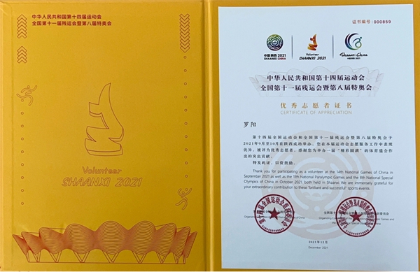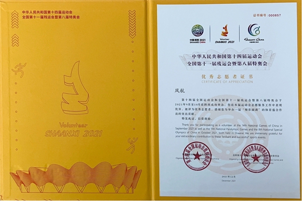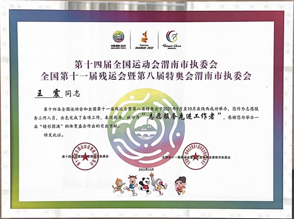 2021年,陕铁院学子用汗水和勤奋选择了一个不悔的全运会,用热忱和责任默默地为渭南赛区做出了自己的贡献。这段经历将是他们人生中一段难忘的回忆,一笔宝贵的财富,同时又为以后漫长的人生路上增添了一个新的转折点。在以后的学习、工作与生活中他们将继续发扬这种志愿精神,锐意进取,开拓创新,将志愿服务期间所学到的经验与方法运用到学习和生活中去,指导他们走好人生之路。(王震)