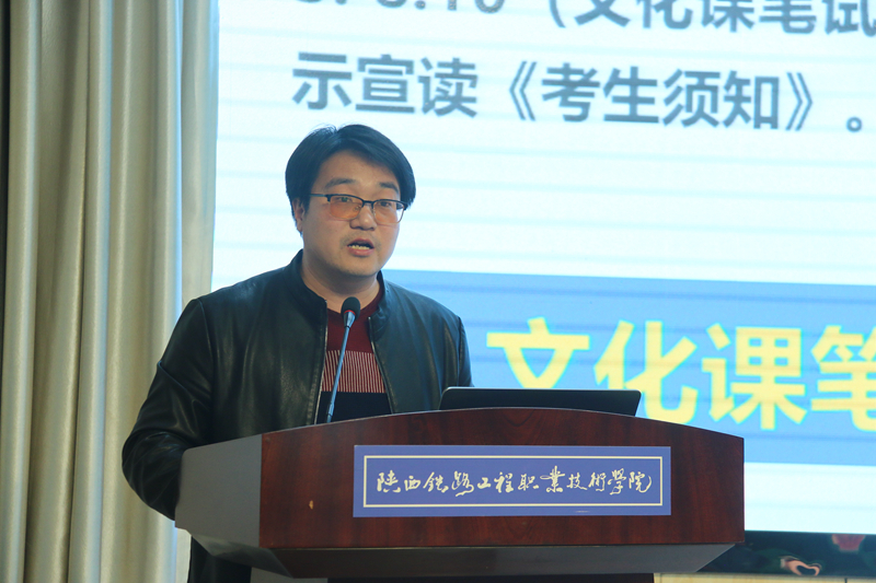 副校长蒋平江对今年的分类考试招生工作作了周密部署,他讲到,一是要高度重视,抓好任务落实;二是要公开透明,做到规范有序;三是要服务到位,做好咨询答疑;四是要遵守纪律,做到公平公正。最后他要求,全体考试工作人员要严格按照国考标准履行各自职责,展示陕铁院风清气正的良好精神风貌。