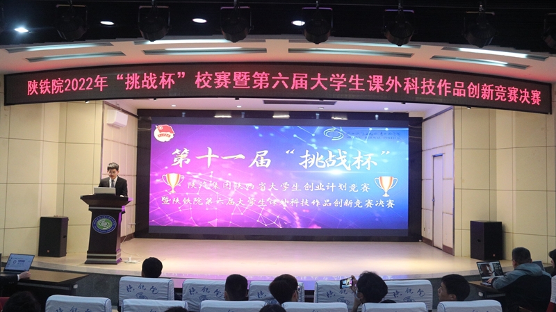 3月23日下午,2022年“挑战杯”校赛暨陕铁院第六届大学生课外科技作品创新竞赛决赛采用线上线下相结合的形式在临渭校区学术报告厅与高新校区A1-113举行。副校长祝和意、各校内评审专家及各学院参赛师生参加大赛。