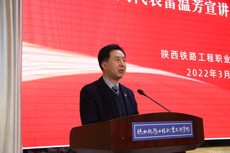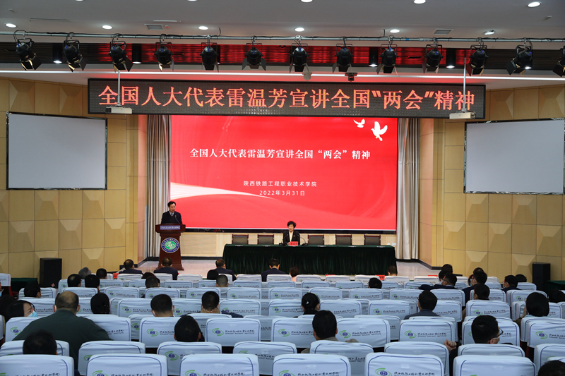 为深入学习全国两会精神,准确把握两会精神的精髓要义和丰富内涵,3月31日下午,学校邀请全国人大代表,合阳县黑池镇五丰社区党总支书记、主任雷温芳来校作全国两会精神宣讲报告会,学校党委中心组成员及全体处科级干部参加了宣讲会。