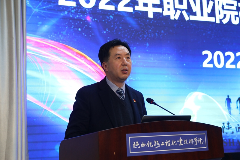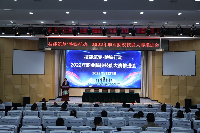 3月31日下午,陕铁院2022年职业院校技能大赛推进会在高新校区博爱厅举行,党委书记王津、校长焦胜军、副校长蒋平江出席推进会,各二级院部处科级干部、教研室主任、省赛各赛项指导教师及参赛学生参会,会议由党委副书记李林军主持。