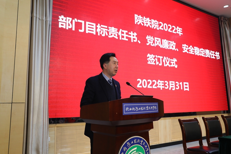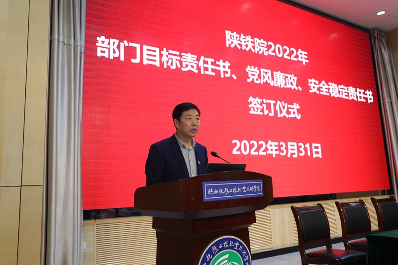 王津传达了教育部2022年教育系统全面从严治党工作会议和《陕西教育领域突出问题专项整治工作方案》文件精神。他强调:当前全国疫情防控形势仍然复杂严峻,从严从实做好防控工作,筑牢校园疫情防控坚固防线任重道远。签订责任书就是要进一步明确责任,细化目标,变压力为动力,确保学校年度工作任务优质、高效、顺利完成。全校教职工要进一步提高政治站位,坚持底线思维,强化责任、勇于担当,统筹推进疫情防控和学校事业发展,以实际行动和优异成绩迎接党的二十大胜利召开。