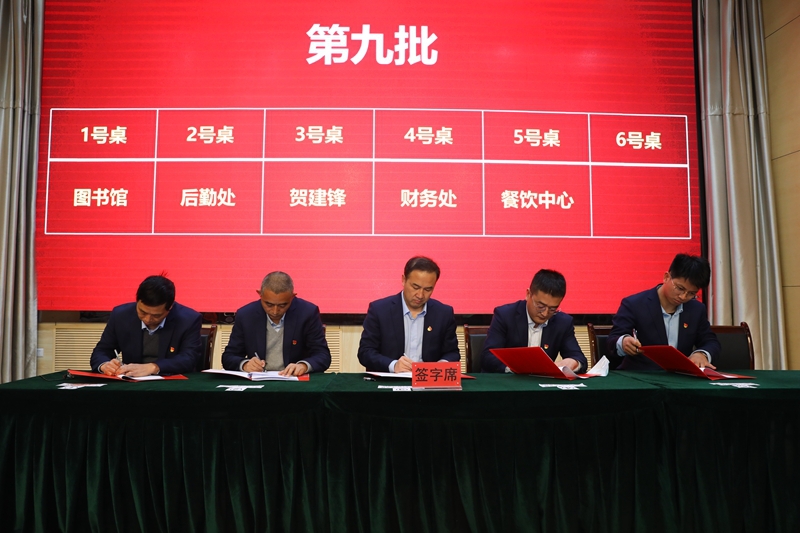 贺建锋副校长与财务处、后勤处、餐饮中心、图书馆签订责任书