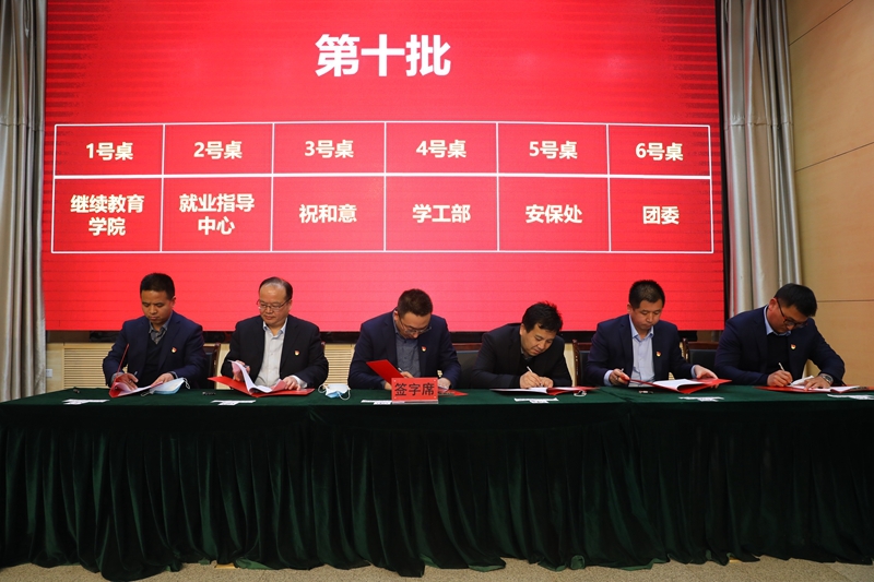 祝和意副校长与学工部、团委、就业指导中心、安保处、继续教育学院签订责任书