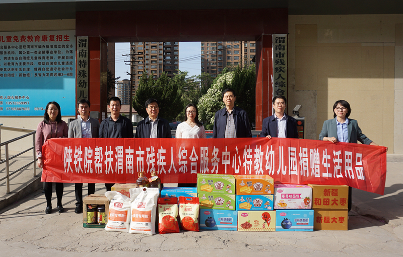 4月8日下午,学校人事处处长、党委教师工作部部长刘超群一行三人赴渭南市残疾人综合服务中心特殊幼儿园捐赠爱心物资。临渭区教育局党工委副书记、副局长李学斌,教育局学前办主任陈林,渭南市残疾人综合服务中心主任曹文德,副主任姚艳红,特教幼儿园园长曹小苗出席捐赠仪式。