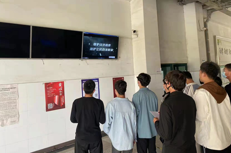 为进一步加强“扫黑除恶”专项斗争的宣传力度,防范黑恶势力渗入校园,推进平安校园建设,学校在教学楼和学生公寓利用电子屏不间断播放“扫黑除恶”专项斗争宣传教育视频。
