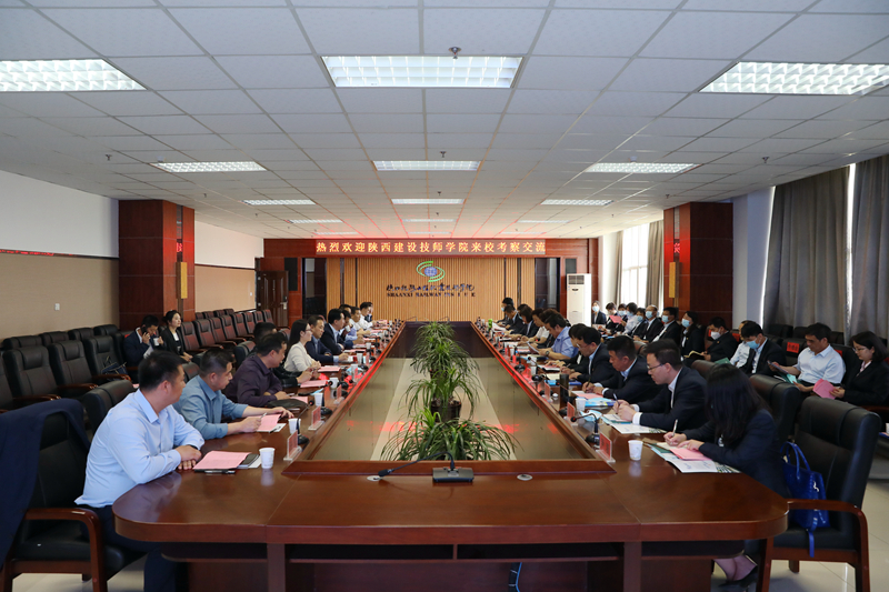 4月26日,陕西建设技师学院党委书记、院长岳岚,副书记、常务副院长程根虎一行28人来校考察交流。学校党委书记王津,副校长蒋平江、贺建锋与来宾在高新校区进行了座谈。党政办、人事处、教务处、财务处、信息化与网络安全处、后勤保障处、科技处、学生处、 安全保卫处等部门负责人参加了座谈会。会议由蒋平江主持。