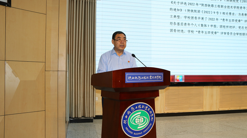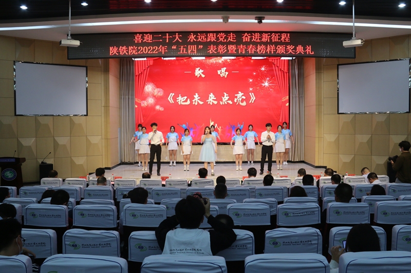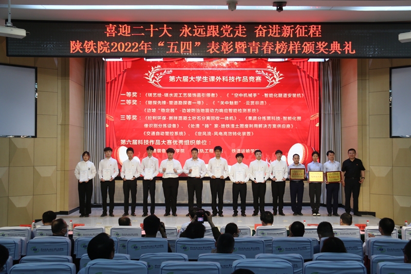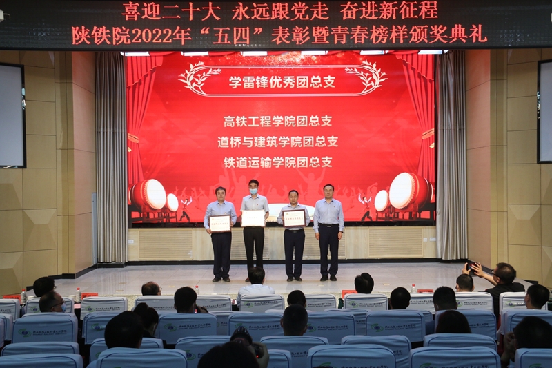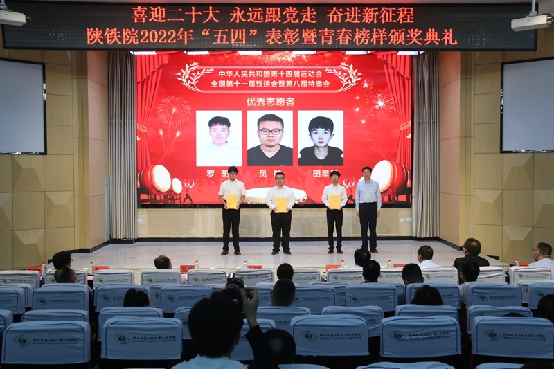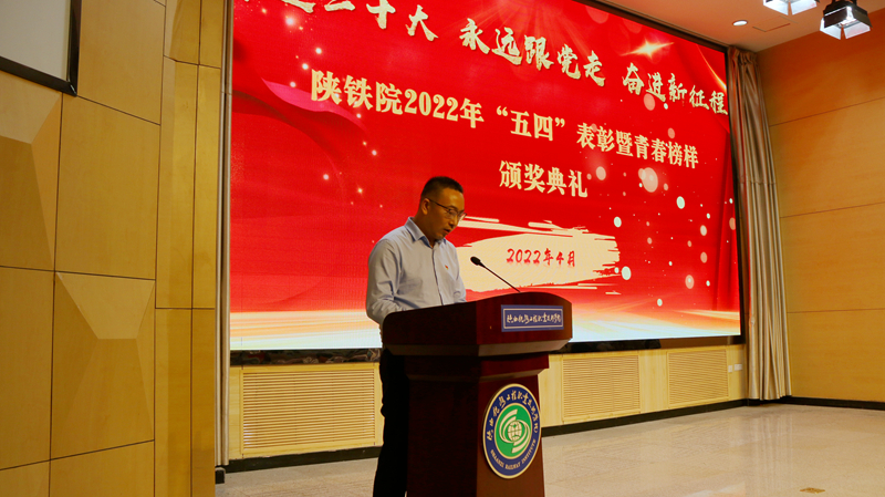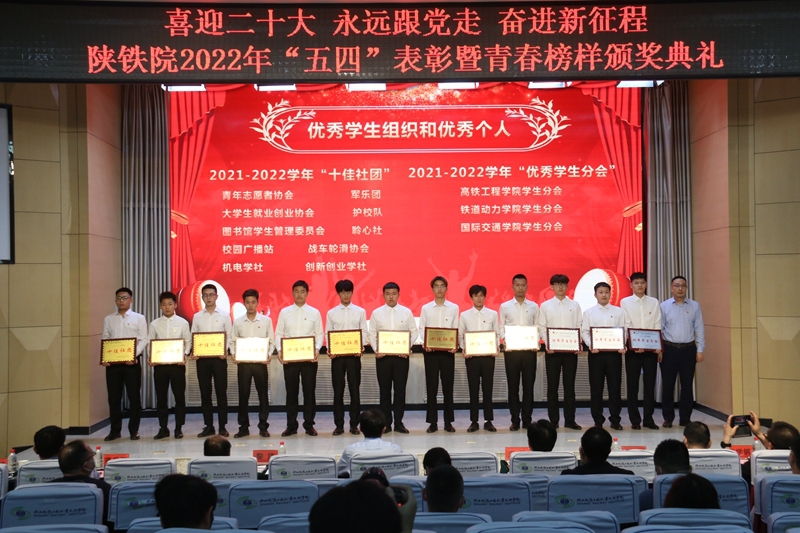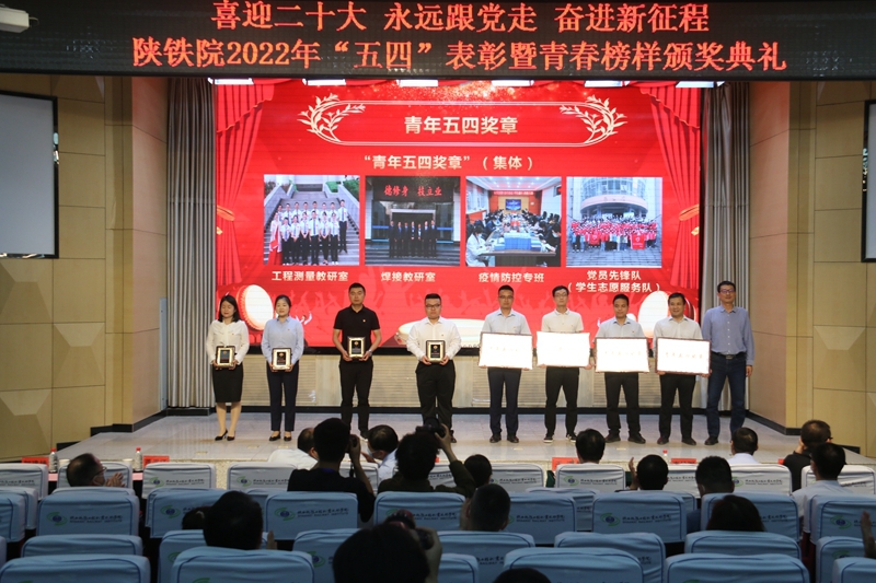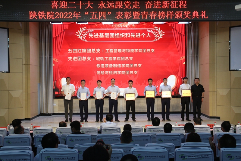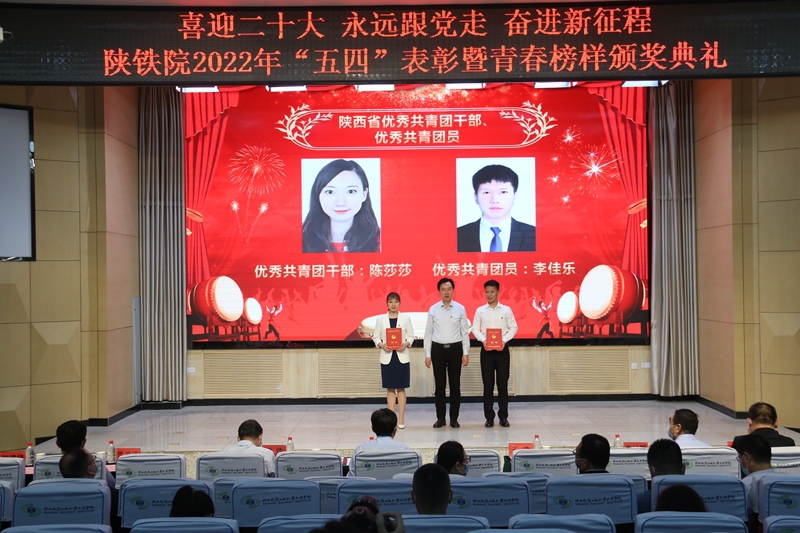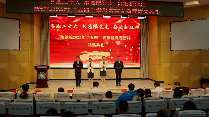 喜迎二十大,永远跟党走,奋进新征程。4月27日,陕铁院2022年“五四”表彰暨青春榜样颁奖典礼在学校高新校区博爱厅举行。学校党委书记王津,校长焦胜军,党委副书记李林军,党委副书记、纪委书记黎炜,副校长蒋平江、张学钢、贺建锋、祝和意等出席颁奖典礼。2021年度“五类十佳”青春榜样学生家长代表以及校党委宣传部、就业指导中心、学工部、马克思主义学院、校团委、各学院党总支书记、学工办主任以及各班团支书代表参加此次颁奖典礼。辅导员、班主任和各班学生通过线上在教室观看颁奖典礼直播。