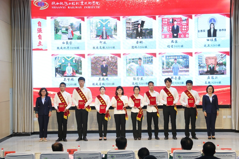 “青春榜样”被誉为“铁院人的年度精神史诗”。会后,受表彰的“青春榜样”们将会走进班级、走近每一位学生,开展先进事迹宣讲活动,鼓励和引导全校学生勤奋刻苦、积极进取、勇于创新,培养自强自立、文明礼貌、乐于奉献、敬老爱幼的高尚品质。据悉,学校契合新形势,自2008年以来,至今已经是第十四年了。每年均在大学生中评树刻苦学习、甘于奉献、勤练才艺、自强自立、孝老敬亲等“五类十佳”青春榜样,隆重邀请受表彰的学生家长参观校园,组织召开“青春榜样”学生家长座谈会,并将其先进事迹编印成册,作为学校文化建设的品牌活动重点推进。评树活动着力构建独具陕铁院特色的“五评五领五培育”榜样教育模式,即“评选刻苦学习榜样,引领优良学风,培育探索精神;评选孝老敬亲榜样,引领家庭美德,培育感恩精神;评选自强自立榜样,引领校园风尚,培育进取精神;评选甘于奉献榜样,引领职业道德,培育敬业精神;评选勤练才艺榜样,引领才艺突出、培育艺术精神”。青春榜样的评树在陕铁院内营造了积极向上的校园文化,丰富了大学文化育人模式,引领了青年学子健康成长,极大提升了学生的核心竞争力。(吕泊怡/文 王凯 学生记者 汤朝阳 张丞骥/图)