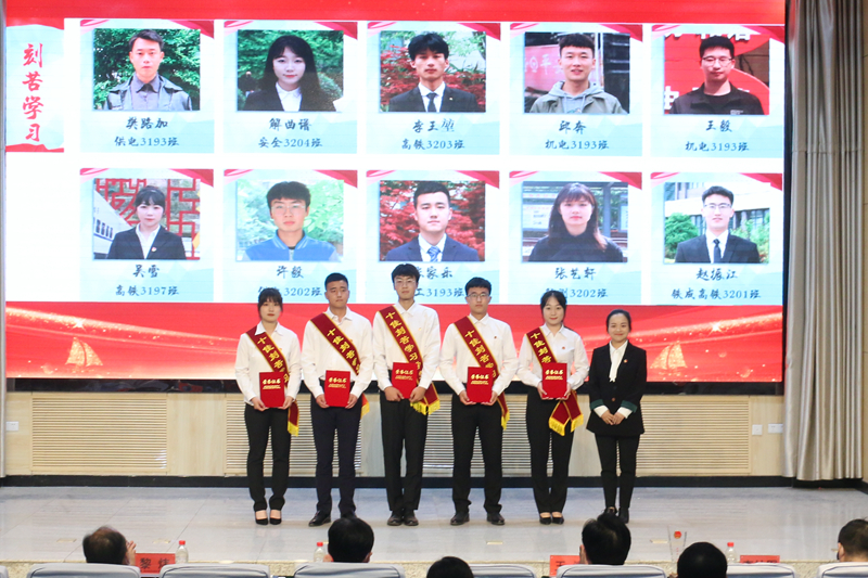 优秀辅导员代表李阿娟向十佳“刻苦学习”青春榜样颁奖
