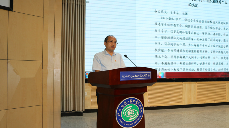 祝和意副校长向“优秀学生组织和优秀个人”颁奖