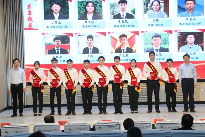 王津书记和焦胜军校长向十佳“孝老敬亲”青春榜样颁奖