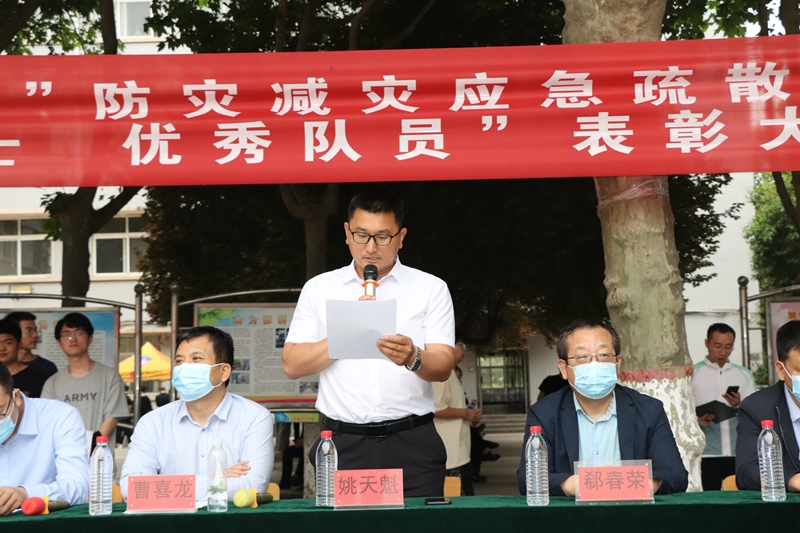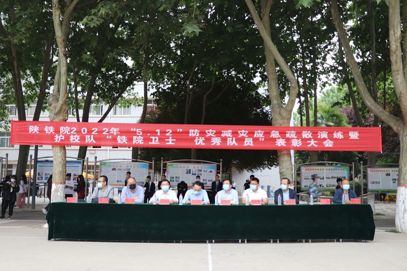 5月12日下午,陕铁院护校队2021年度“铁院卫士”“优秀队员”表彰大会在临渭校区篮球场举行。学校副校长祝和意及安保处、学生处、校团委、各二级学院等部门负责人出席表彰大会,临渭校区二级学院学生及护校队员共计300余人参加了表彰大会。表彰大会由安保处副处长康江龙主持。