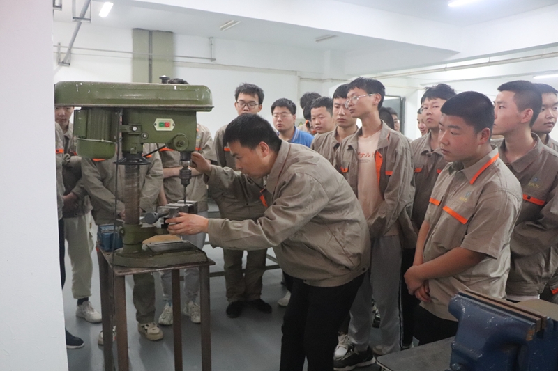 活动中,陕西省劳模郭辉做“走近劳模工匠,感悟劳动光荣”主题报告,他从爱岗敬业、艰苦奋斗、勇于创新、争创一流等方面结合自身经历进行报告,让劳模精神、劳动精神落地生根;同时,为端正学生就业态度,引导学生做好职业规划,北人印机人力资源部部长宋勇做“就业准备、就业指导”主题报告,宋勇从定位、规划、忠诚、发展、心态5个方面展开讲述,鼓励同学们认真就业、积极就业;随后,学院年轻教师朱帅、金楠同时向郭辉和郑永涛大师进行拜师活动,两位徒弟做表态发言,两位师傅也提出了具体要求;最后,在金工实训室,劳模郭辉与钳工高级技师郑永涛共同为师生做钳工技能演示。