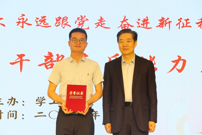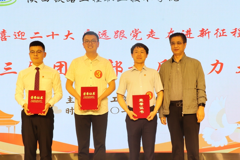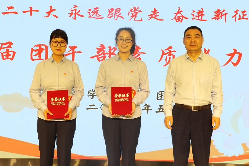 宣传部部长亢新河为专职团干部组三等奖老师颁奖