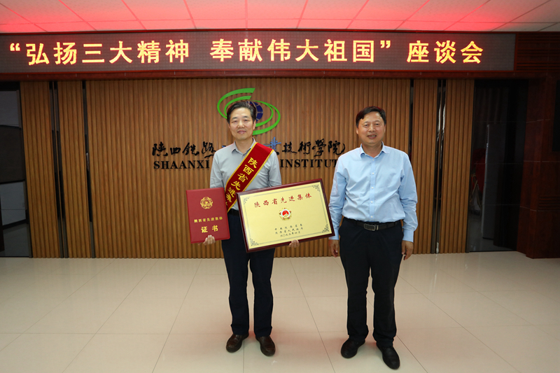 徐富权主席为学校颁发陕西省先进集体奖牌