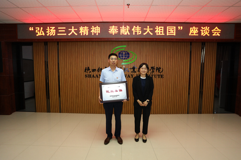 杨娟调研员为学校颁发2021年陕西省劳动竞赛优胜集体奖牌