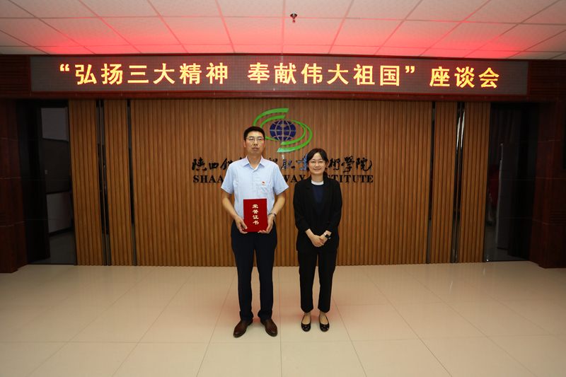 杨娟调研员为南黄河院长颁发2021年陕西省职业技术大赛优秀组织工作者证书